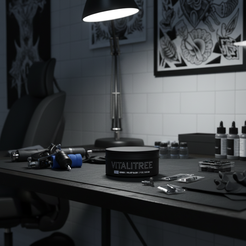 Vitalitree Relief Glide provides a multi-action analgesic formula featuring Lidocaine for numbing, Hemp extract for relaxation, Kava Kava to help calm the central nervous system, and Eugenol for soothing relief. Also, it is enhanced with Tepezcohuite, Chamomile, Calendula, and Witch Hazel for their redness and irritation reducing benefits. This smooth, non-greasy ointment glides effortlessly across skin, helping to minimize pain and discomfort during tattoo sessions while also helping to keep the skin calm, therefore helping both client and artist alike.*